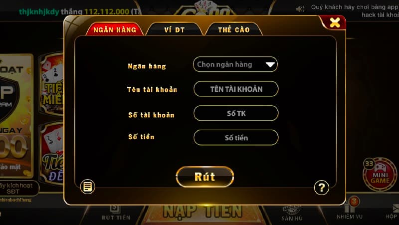 Rút tiền từ tài khoản Go88 về tài khoản ngân hàng của bạn là một quy trình đơn giản. Nhưng hơn hết quy trình này sẽ đòi hỏi sự chính xác và cẩn thận.